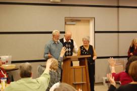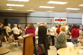 Bob Flynn spoke of the spiritual warfare that is raging today with 55,000,000 slaughtered by abortion, the sanctity of marriage challenged, cohabitating, the decline of Mass attendance showing loss of faith, the removal of Jesus from Christmas, suicides out of despair, and 10 Commandments being prohibited from being displayed in public places. He challenged us to be the light for this world. He reminded us that in our Christian renewal we have been given much and these gifts are for service and not for ourselves. We are being called to make a difference in our world and in our church. Bob reminded us with a quote from Pope John Paul, The Lord is counting on you. The church is counting on you. Using John 3:16 he reminded us that we were baptized in the Holy Spirit and fire. We need to be on fire for Jesus. Prayer groups give us light for our lamps. Don't let Satan separate the logs in the fire, allowing it to die out, but keep them together and lit for the world.