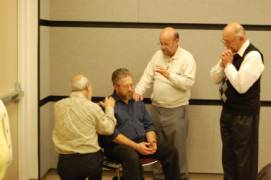 John Hogan, from the Service Team drew from his many personal experiences, to give us several suggestions of how we might serve our pastors. He reminded us of the unreal pressures of today's priests working with good people all doing good works while all needing a priest's direction 24/7. Besides this, today's priest is celebrating all the sacraments plus burials in multiple churches, sitting on numerous committees, teaching classes and often celebrating multiple masses daily. What do we as Charismatics do best? John inquired. We pray. Prayer can make a profound difference to a priest if he knows we are praying for his guidance, direction and strength. He advised us to let our parish priests know that we are combining the Holy Spirit's guidance with these prayers. Involve the whole parish in your prayer. People will bring prayer requests to your prayer group when they know your group is willing to pray with expectant faith and is not afraid of the manifestation of the Holy Spirit. John shared how the prayer group he belongs to had engaged in spiritual warfare against evil spirits after a $100,000 embezzlement and how God had blessed his parish with a growth of enrollment in the parish school from 70 to 192 students in a time when school populations are falling. The prayer team from John's parish have made themselves available to their parish priest at a moments notice when he has requested prayers. A prayer group, John advised, needs to devote more than prayer but become active in their church also using their charisms. Become involved, sacrifice your lives and ask your priest, What can we do for you? If a request to start a new prayer group is refused, accept it, as our pastor's authority is delegated by the bishop. However, the Pastor will always have something the prayer group can do for him or the parish. You might want to ask if the matter could be revisited sometime in the future.