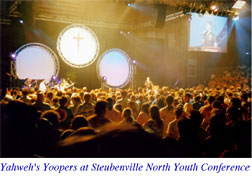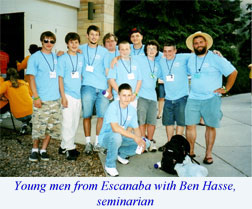 Every youth Conference ends with a beautiful Mass, this time the main presider was Bishop John Neinstedt, who was just named to succeed Archbishop Harry Flynn for the Archdiocese of St. Paul. Drawing our strength from the Eucharist, we ended the Conference with renewed love, fervor, and commitment to follow the Lord. At the conclusion of the final Mass for each Conference there is usually a ‘vocations call’ for young men and women who think that God may be calling them to vocations of priesthood or religious life and are open to that. They are invited to come forward from the arena seats to stand at the foot of the sanctuary and receive encouragement and prayers of blessing for them to grow in discerning God’s call to them. There were at least 50 young men who came forward (several from our group) and perhaps 40 young women (again some from our group). Their sincerity and openness to the Lord before their peers is again a great witness! On our way back home, our group stopped at the parish in Wausau, WI (where we had stopped on our way to the Conference), where a nice meal was provided by “Yahweh’s Yoopers” workers. Bishop Sample gave us his own great talk, expressing his joy in being with our youth, the hope they give him, and a strong call to follow through in faith through prayer, the Eucharist, and regular confession. He mentioned how someone once remarked to him that events like this with young people were (in their opinion) just “seed sowed on rocky ground”… Bishop Sample called our youth to prove that opinion wrong by their faithfulness to what they have heard, learned and experienced from the Lord. He gave all a special invitation to the Diocesan Youth Gathering scheduled for Jan. 18-20, 2008 in Marquette, which is aimed to foster a similar stirring of faith among youth of the whole Diocese. Those youth who made the “Steubenville North” trip can be real ‘ambassadors for Christ’ and draw others to discover the ‘access’ we have to Him in the Church!